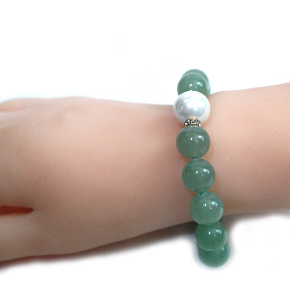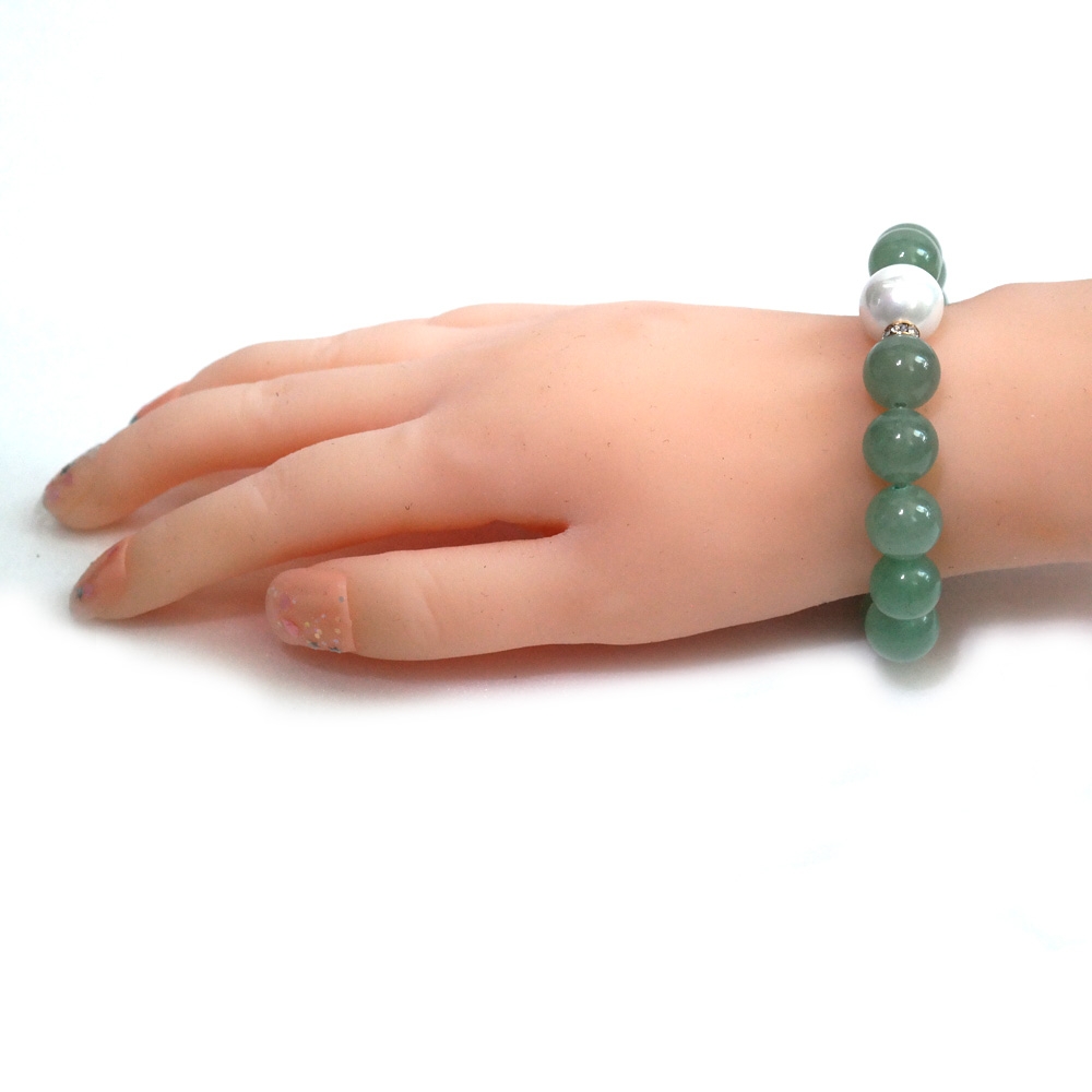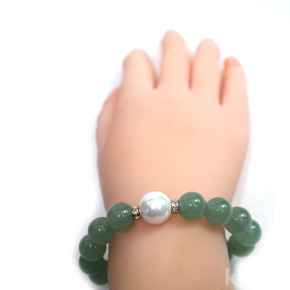 진주가1개 달려있는 옥으로 만들어진 팔찌입니다.