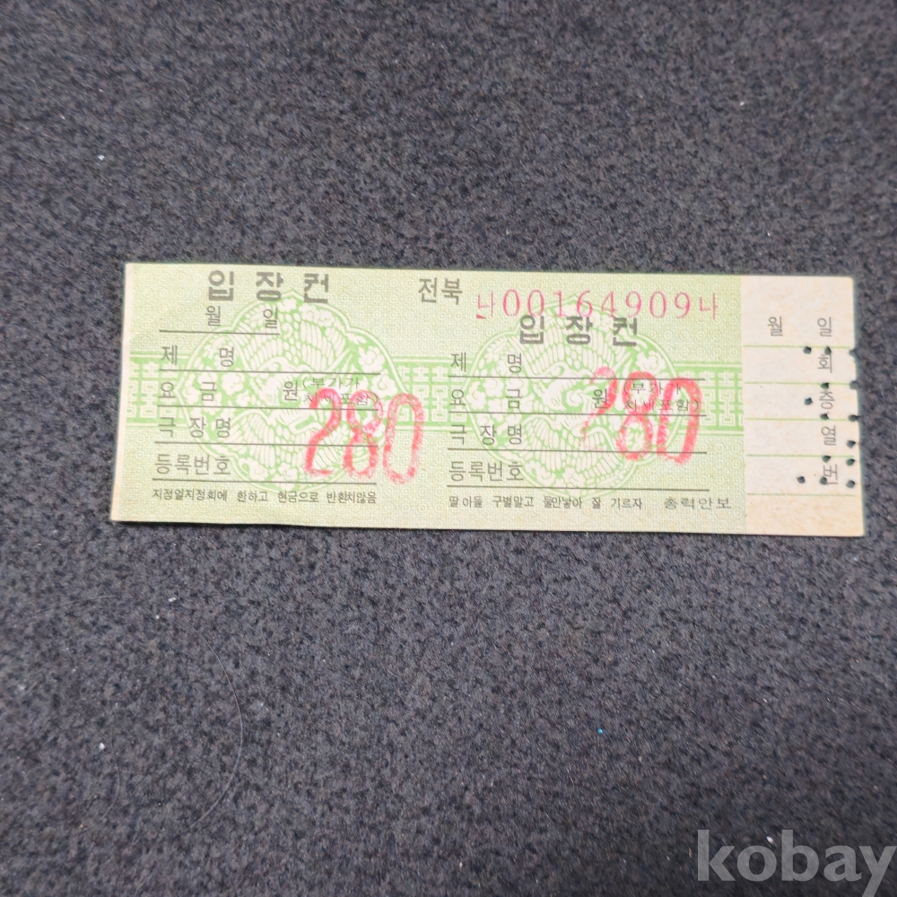 (((근현대사자료/영화자료))) 1970년대 전북극장 입장권 (280원)