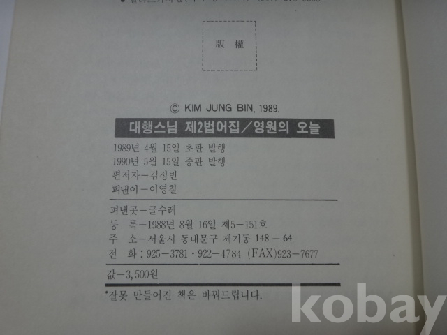 대행스님 법어집 - 영원의 오늘 (1990년)