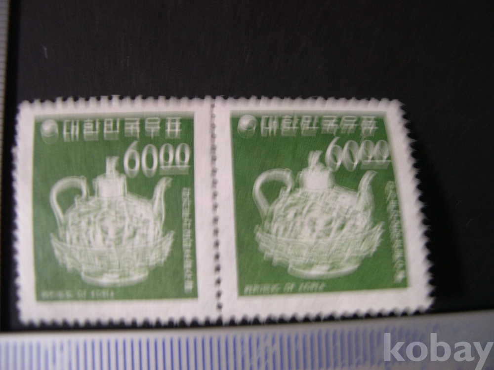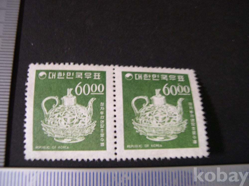 보통 2련 #34 : 60.00원 청자투각 연당초문수병 - 2차 국산백지 (1966. 7. 1)