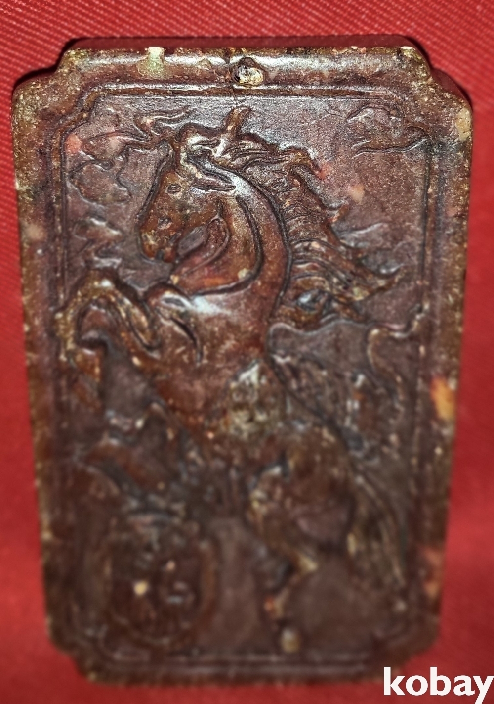 적옥으로 만든 말문양 조각품입니다,