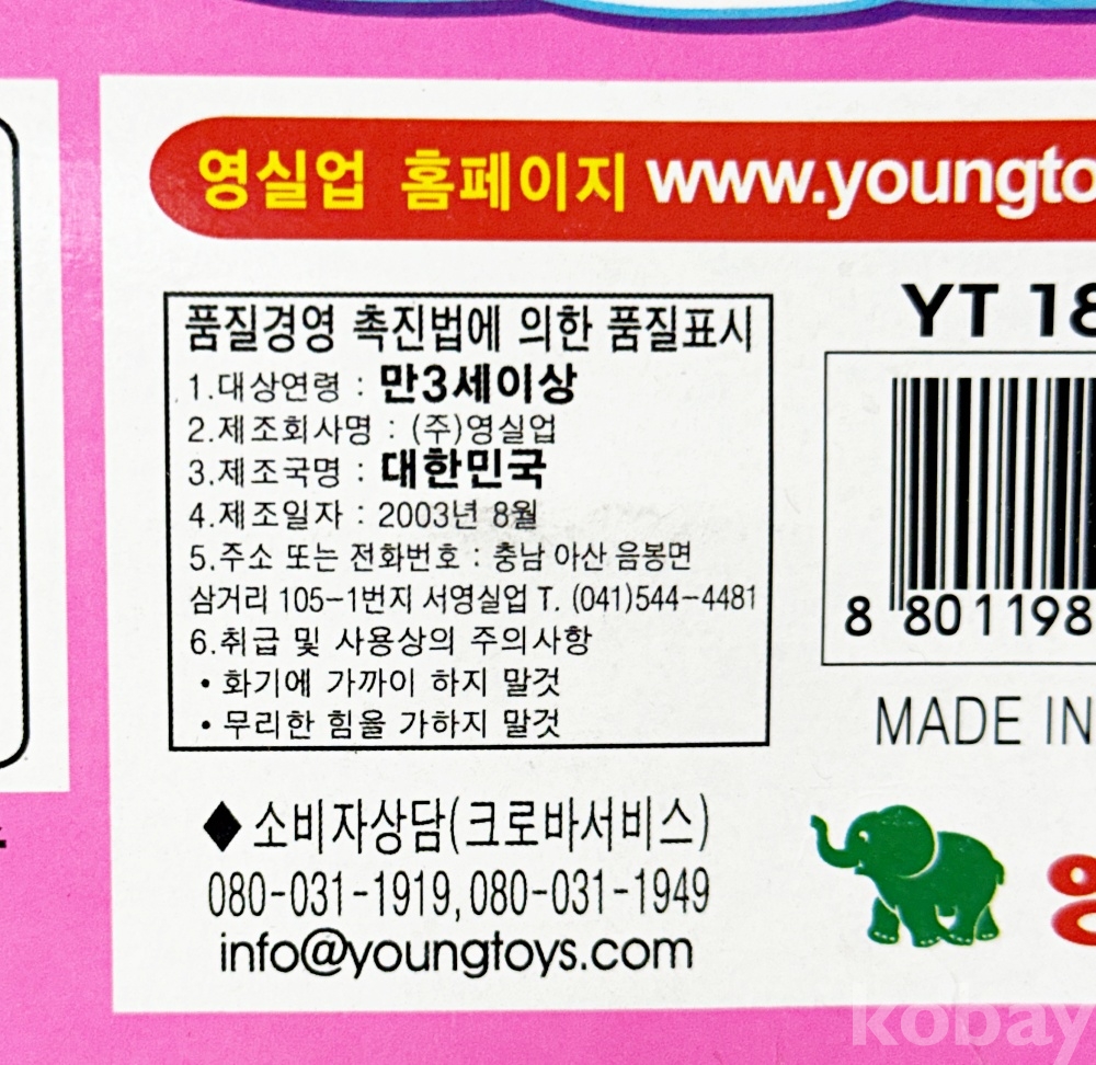 제조사 | (주) 영실업 | 상태 | 박스 : 앞면 우측 하단 찢김, 상세 상태 사진 참고 |