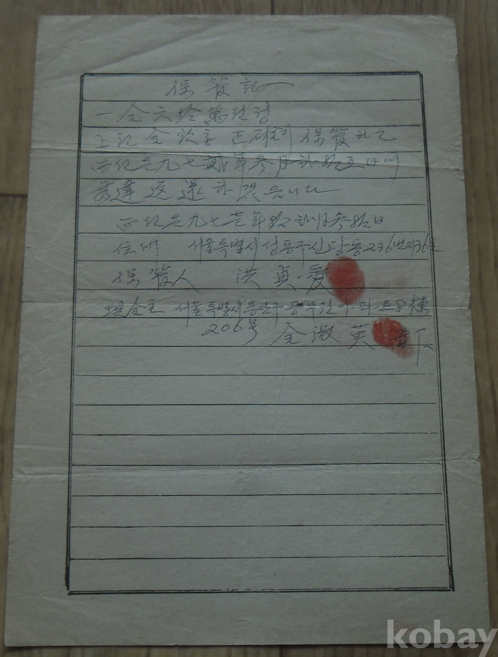 1971년 필사 영수증