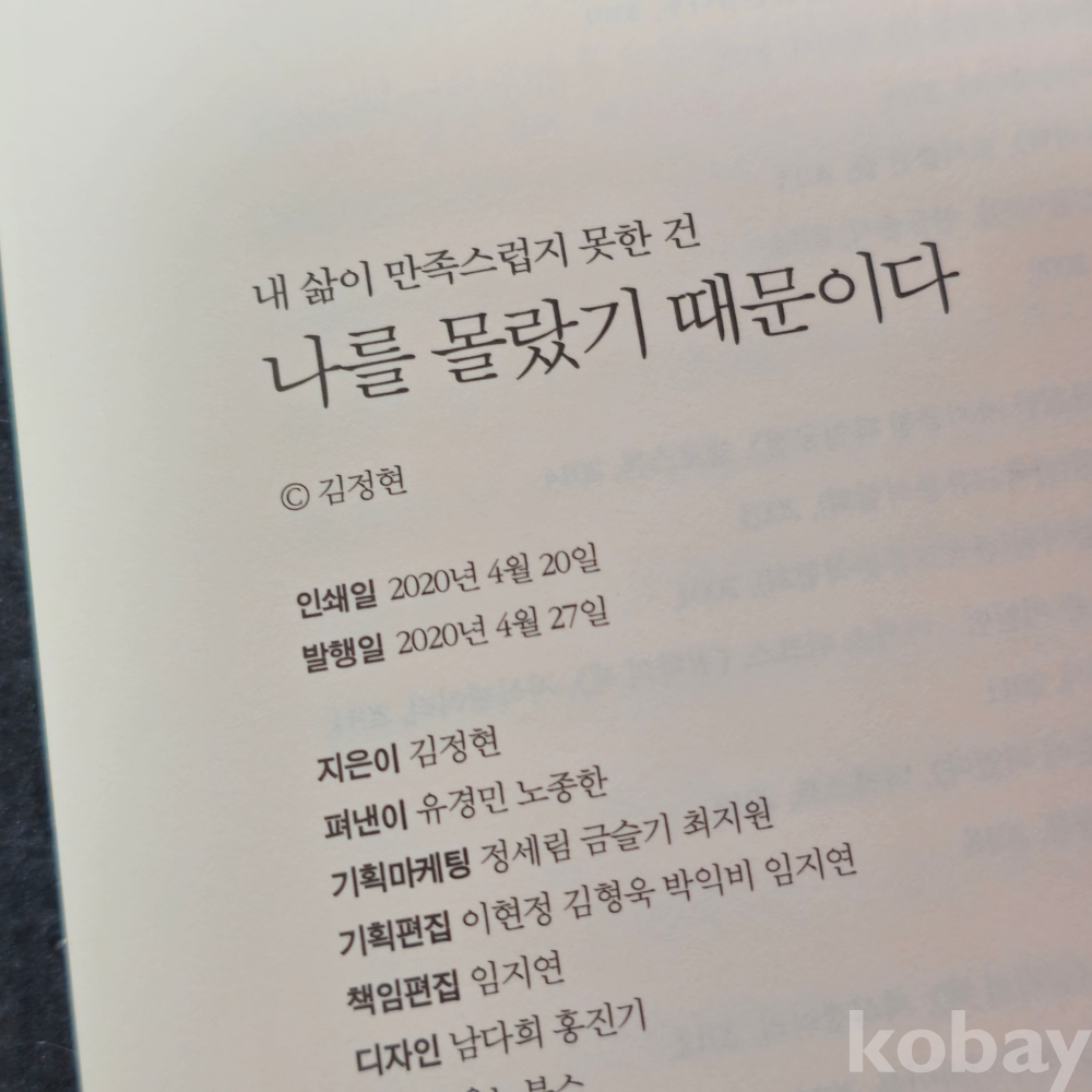 (천원경매) (((서적))) 내 삶이 만족스럽지 못한건 나를 몰랐기 때문이다 (2020년 초판)