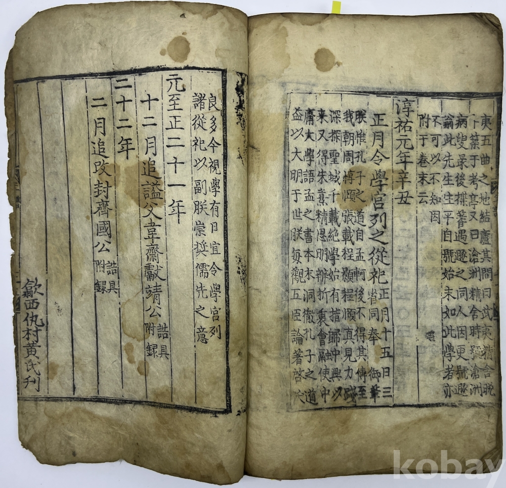 물 품 명 | 남송 주희의 연보로 명대 판본의 복각본을 이황과 배삼익 등이 교정한 대흑구 목판본 [태사휘국문공연보(太師徽國文公年譜)] 1책 | |||||