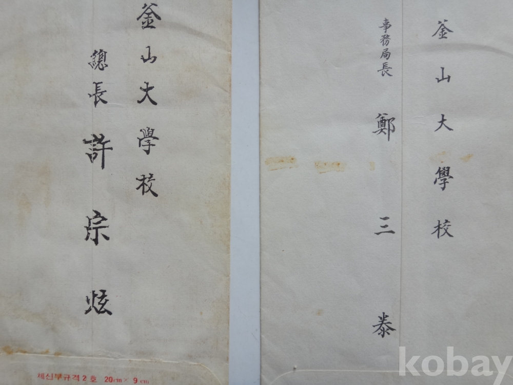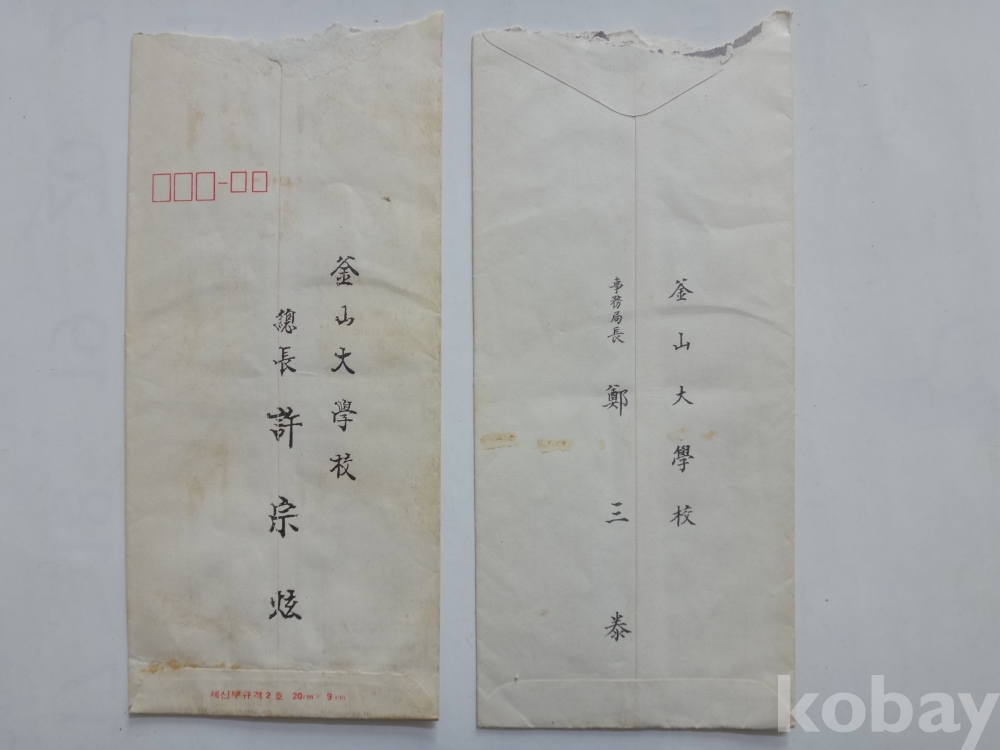 부산대학교 총장 허종현, 사무국장 정삼태 - 부의봉투 2매일괄 (1970년대)