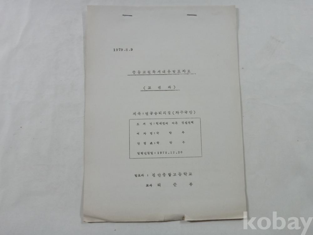 멸공 승리의 길 - 자주국방 (중등교원 독서내용 발표자료, 교련과, 진안종합고 교사, 1979년)