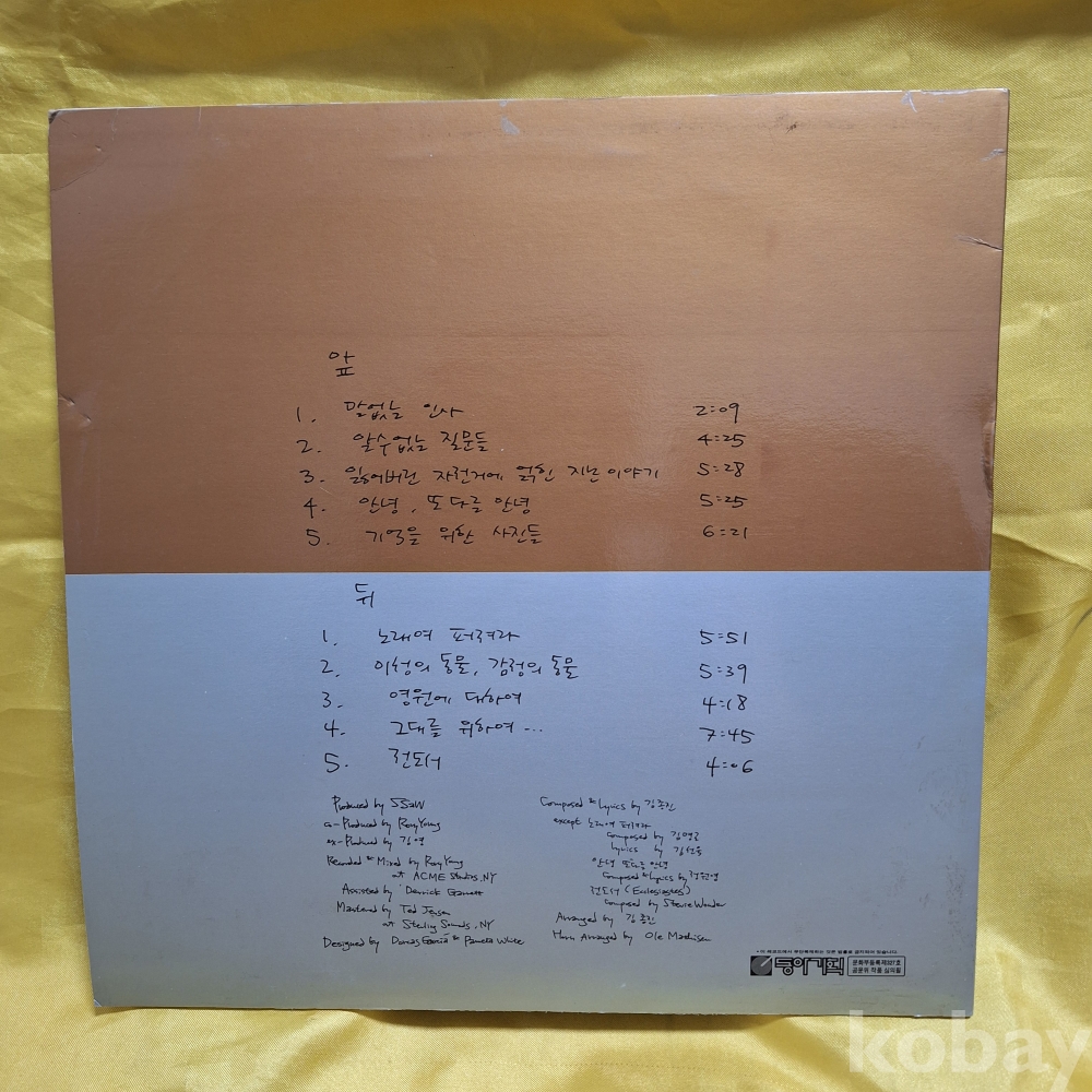 | 자켓상태 | EX : 약간의 마모, 모서리 찢김 존재 | 음반상태 | NM : 개봉했으나 미사용급, 스크래치 없음 | 발매정보 | 알수없음 | 가사지여부 | 유 |
