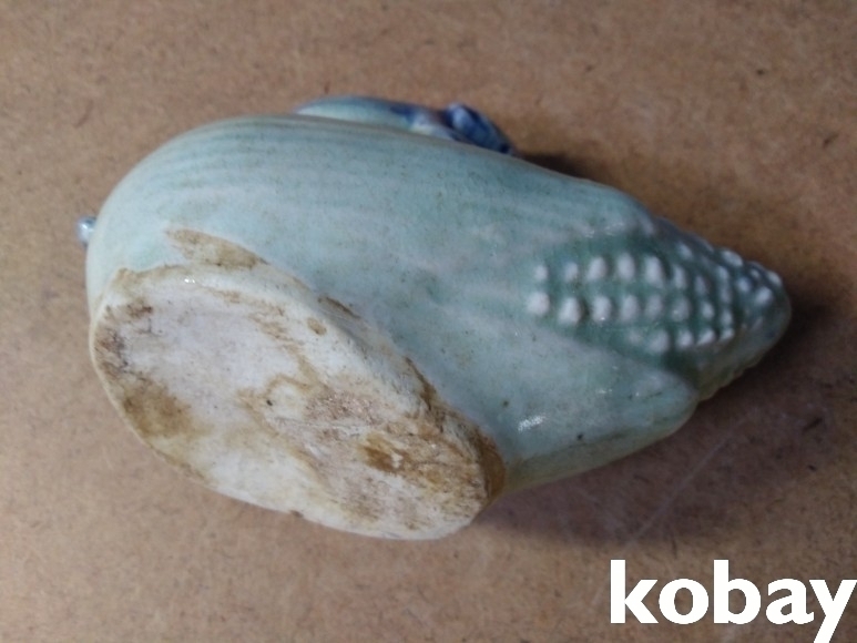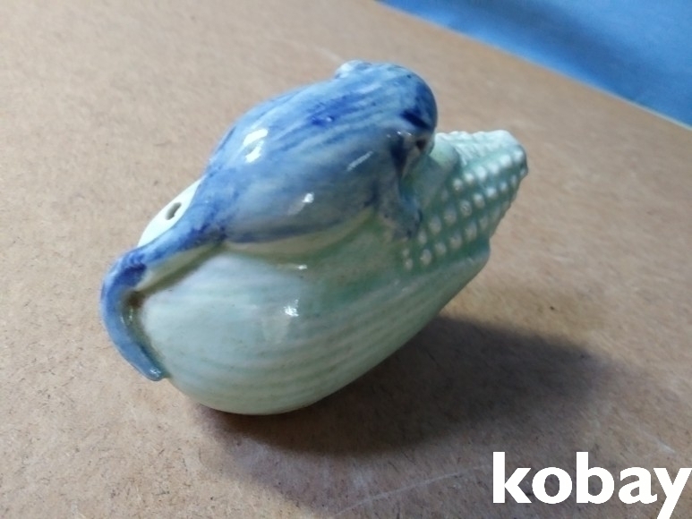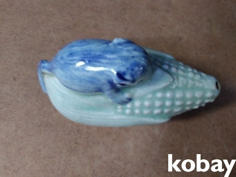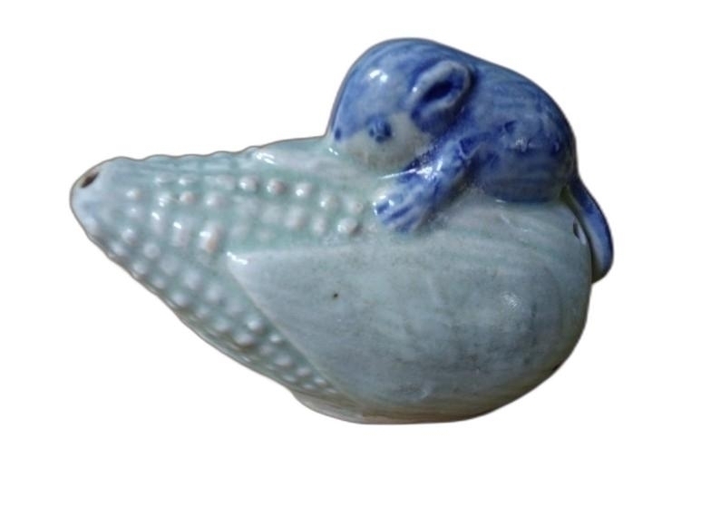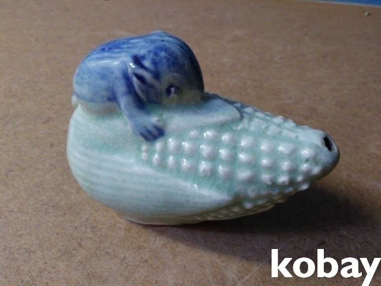 옥수수 위에 쥐가 있는 도자기 연적 입니다.