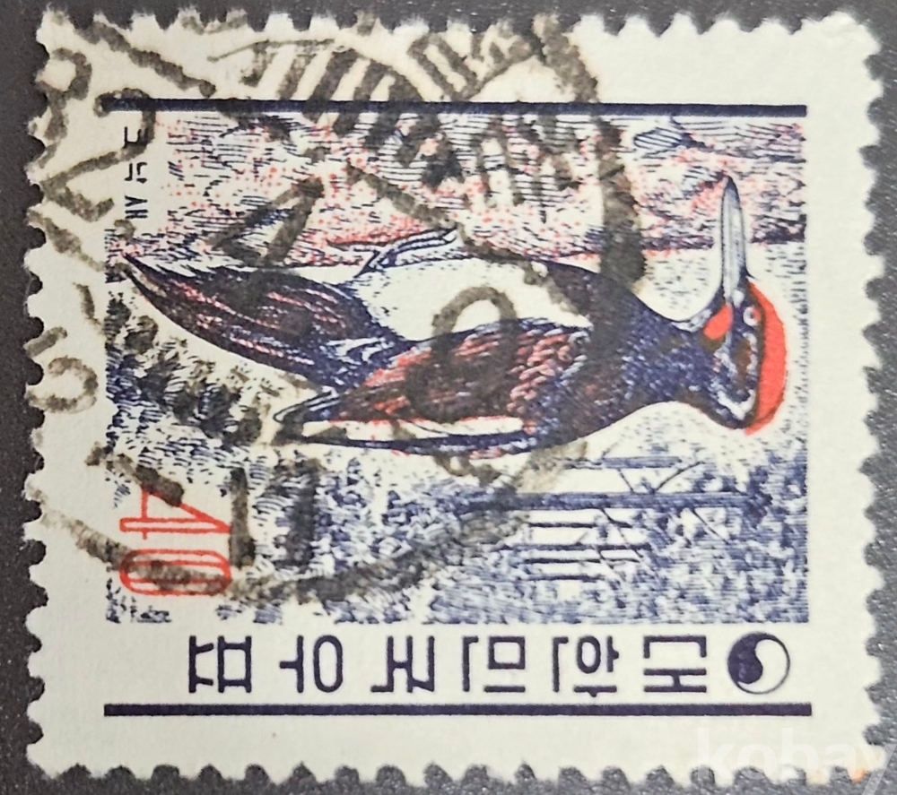 *백지 환화 보통우표 40환 '크낙새' 만월 2