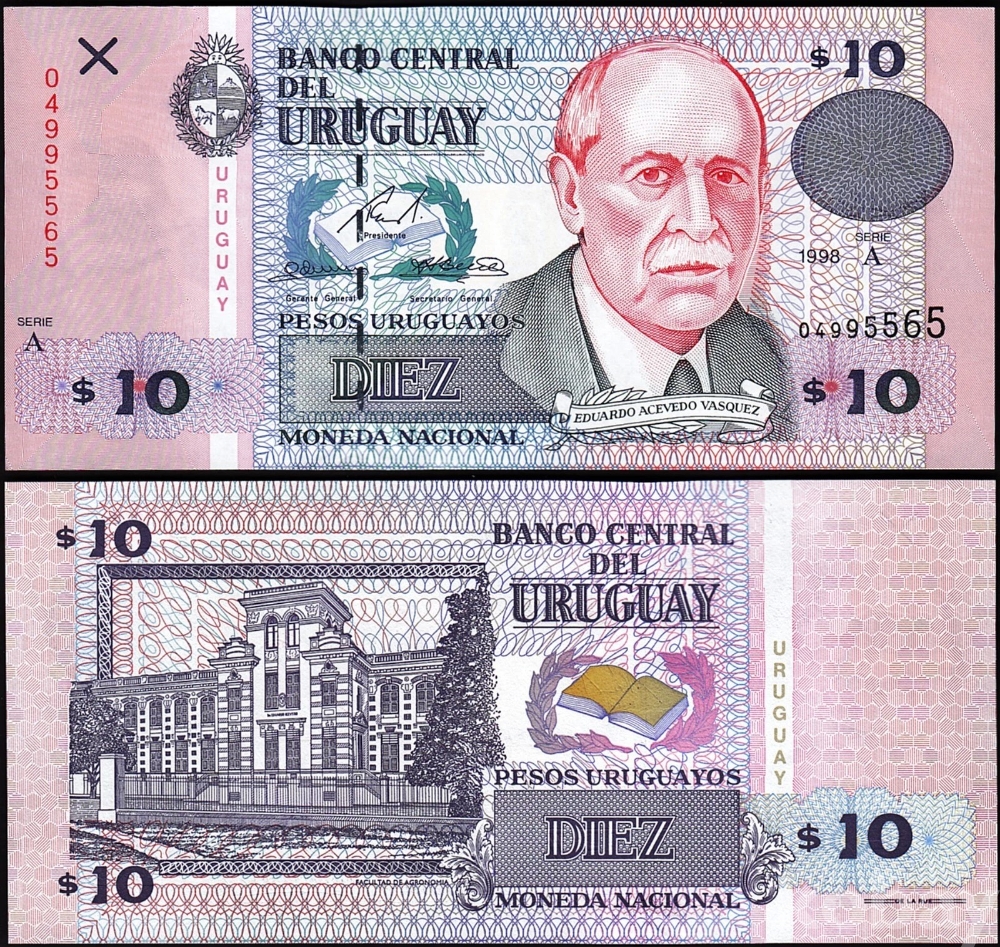 Urguay 10 Peoso 1998년 우르과이 $ 10 페소