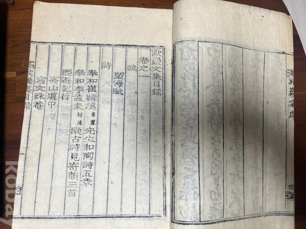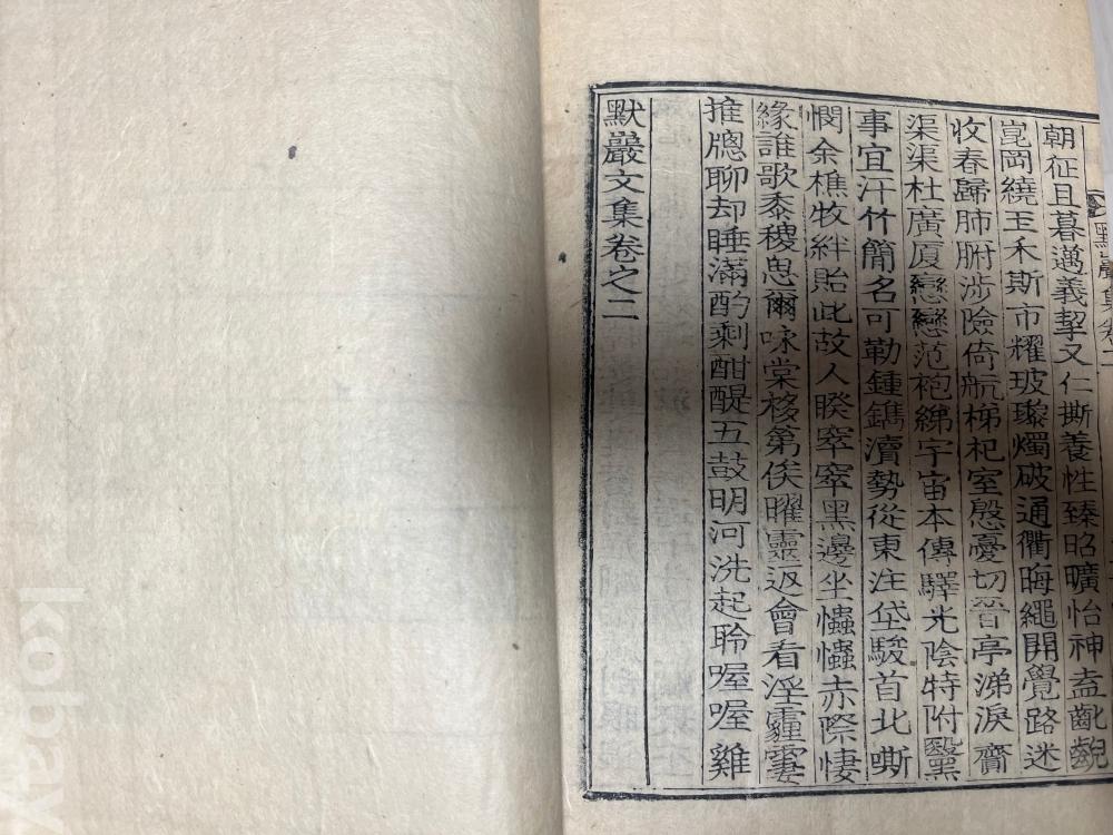 조선 후기의 학자 묵암(默庵) 허강(許강, 1766~1822)의 시문집 2책. 낙장없음. 목활자 한지. 1942년.