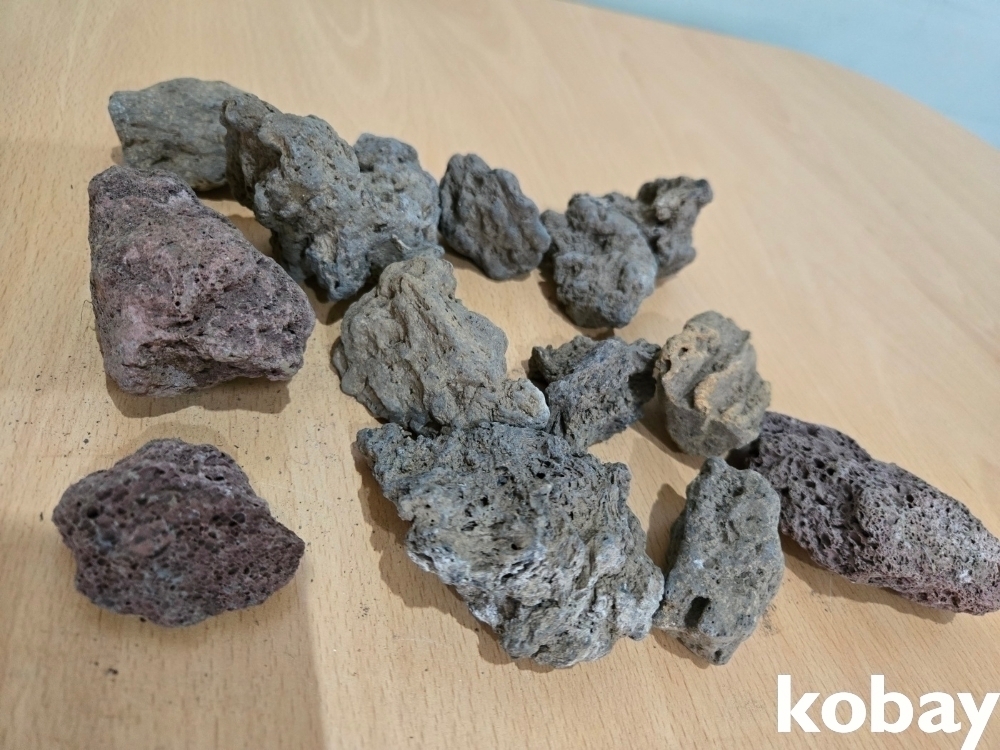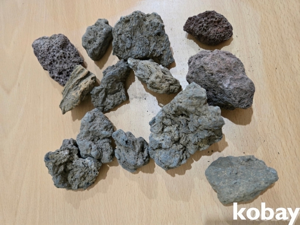 모양과 크기, 색감이 제각각 화산석 13개 입니다.