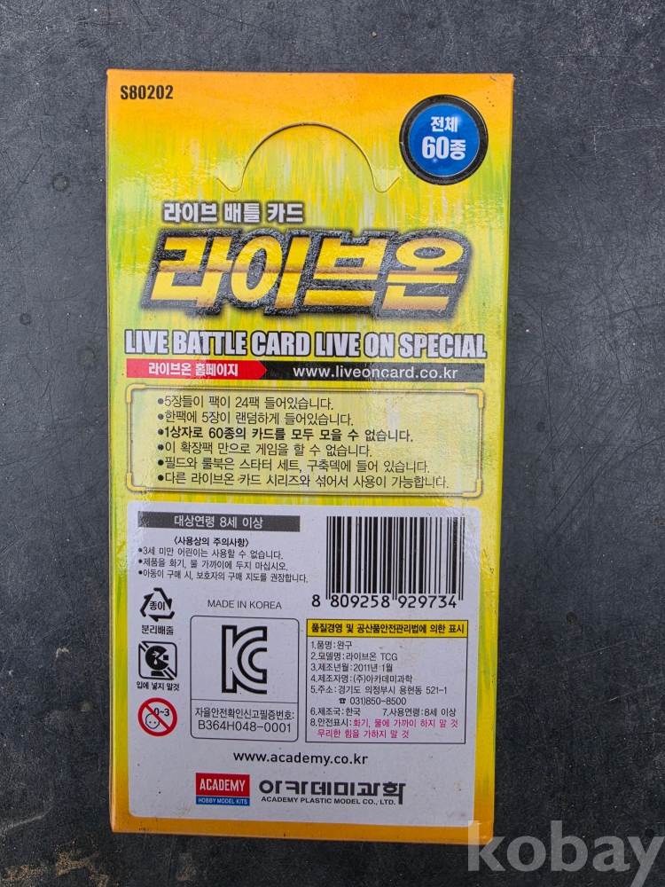 아카데미과학 라이브온 카드입니다.