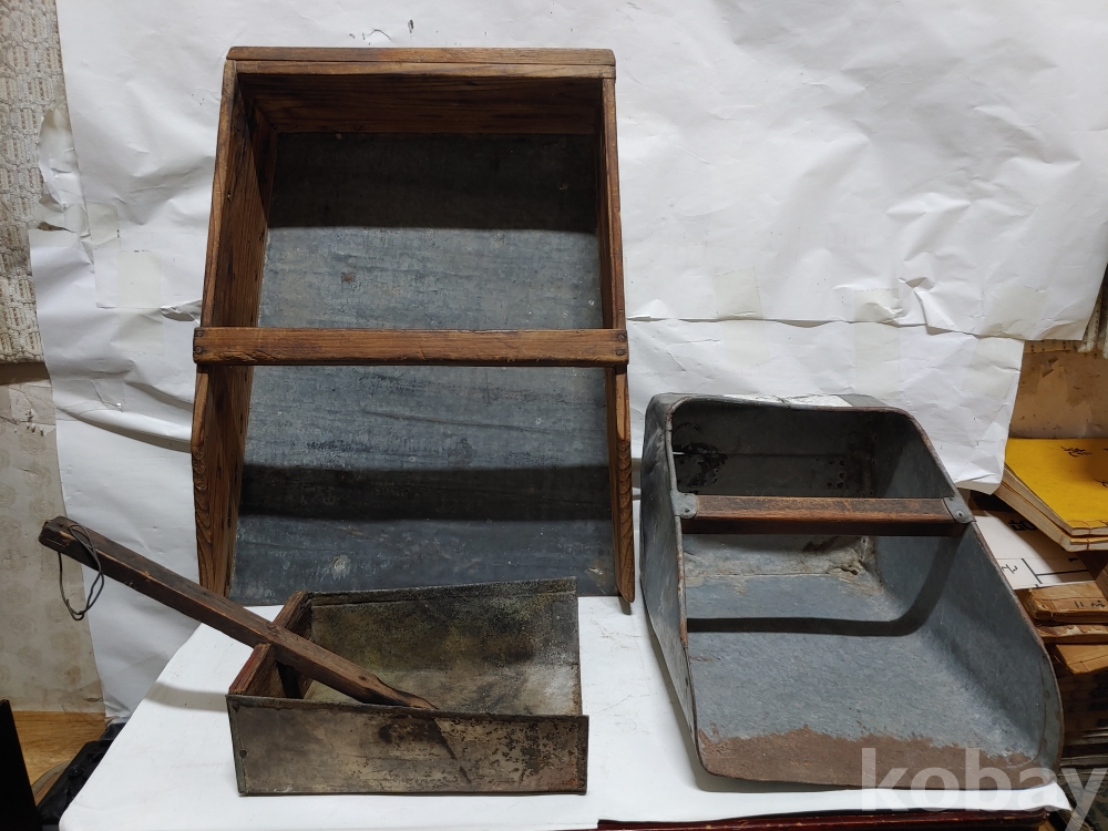 ""소나무와 양철로 만든 쓰레받기 3개 일괄""