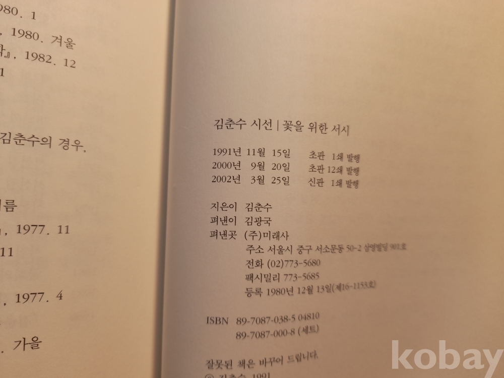 김춘수 시집 꽃을 위한 서시