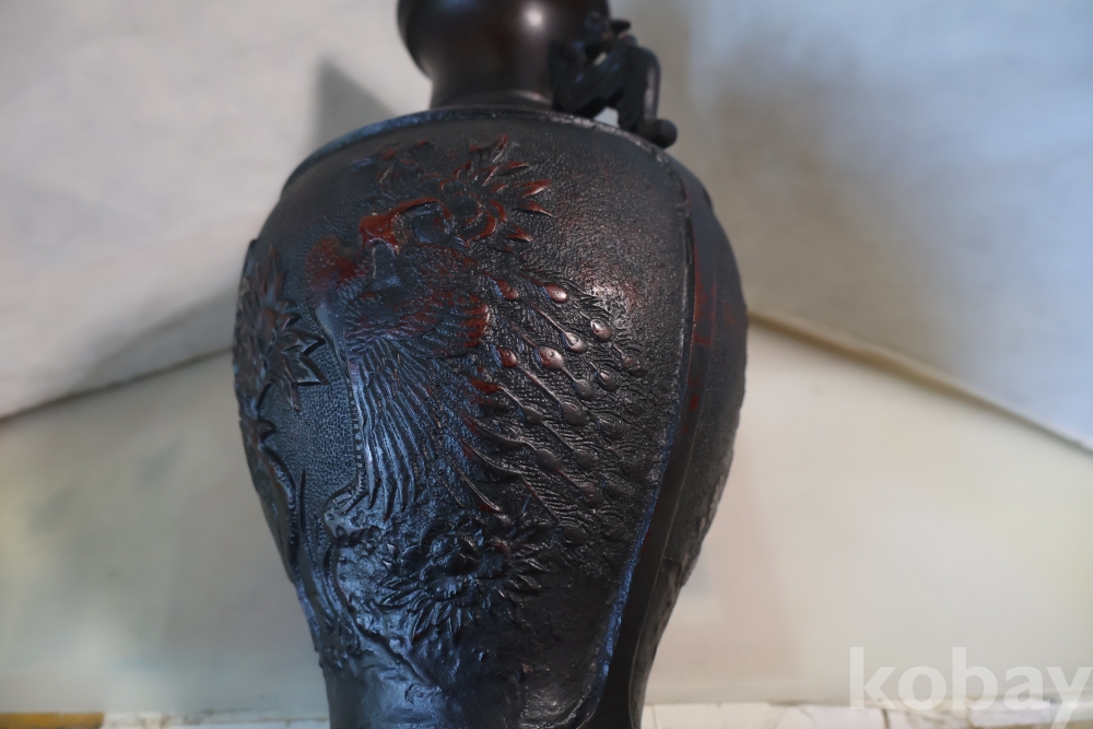 대형 청동 임니다 공작새의 문양을 가진 귀한 명품 이며 무개감 섬세 정교한 당대의 명품 임니다 두손으로 들어야 함니다 무감이 대단 함니다