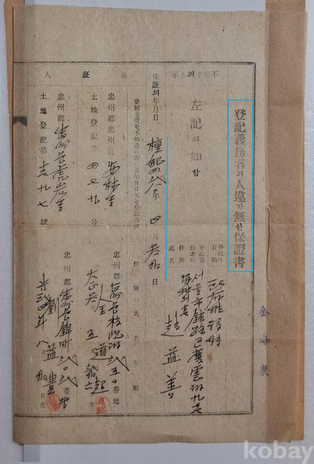 ◈ 보증인 2인의 원형 인장이 날인되어 있다.