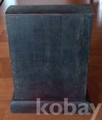경북 북부지역 반촌, 안동지방에서 안동댐, 임하댐건설로 수몰당시 나온 것이라고 합니다. 특히 불천위를 모신 대종가, 종택 사당에 있던것으로 보이며 앞에 나온 와룡촛대, 또다른 주독과 함께 옛 제기로는 눈여겨 볼만한것 같읍니다. 정면 중앙에 길상문자인 “卍字紋”이라든가 안쪽에 조각 등 목공의 예술적인 정성이 들어간 작품입니다. 신주/신위함은 밤나무로 만든것이 으뜸이라 하면서 이 또한 밤나무 재질이라 하는데 저는 글쎄 전문가가 아니라서 그냥 그런가 합니다. 전체가 아교 붙임인듯 일체 못자국이 없읍니다. 상태는 보통 손때, 검정 땟물에 뒷면에 한줄 금이 가 있으나 크게 흠이되지는 않을것 같읍니다. 지금보면 그 땟물과 실금 마져도 고태미를 더 하는듯 하고.. 년도에 대해서는 이견이 있을수 있으니 잘 아시는분만 입찰바랍니다. 박물관이나 기념관용으로 손색이 없을것입니다.