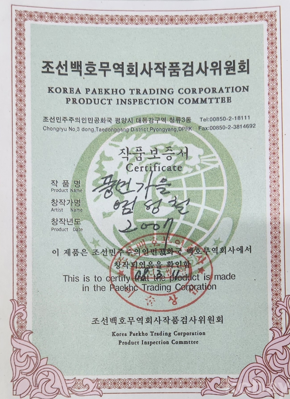##2007년 작품이며 조선백호무역회사 작품검사위원회 보증서 첨부해서 배송 하겠습니다 ##
