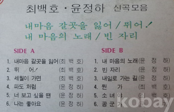 음반없이 쟈켓만 있어요/ "최백호/윤정하의 신곡모음". 희귀.