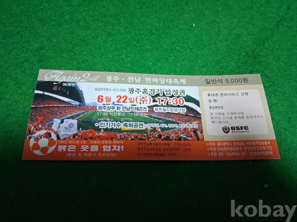 (프로축구입장권) K-리그 2005 광주홈경기 입장권/광주상무 대 전남드레곤즈-미사용