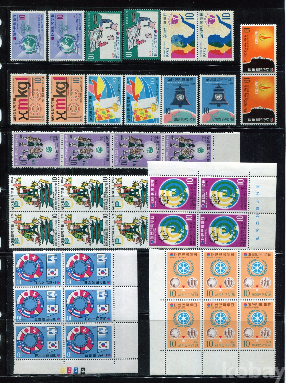 - [블록/우표] 1970년대 초반 기념우표 및 블록 ( MNH : Mint Not Hinged,뒷면 힌지자국없는 깨끗한 상태)