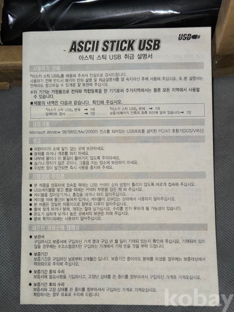 2000년 제조 == 미사용 박스형태 == 아스틱 스틱 미사용