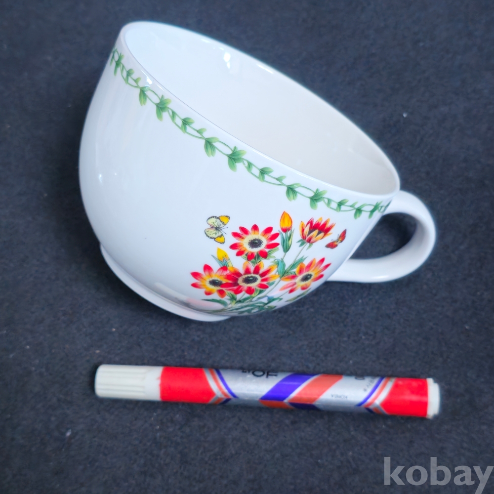 (((도자기식기))) 오래전 일본에서만든 꽃문양과 나비그림 도자기 씨리얼 볼 (Keito)