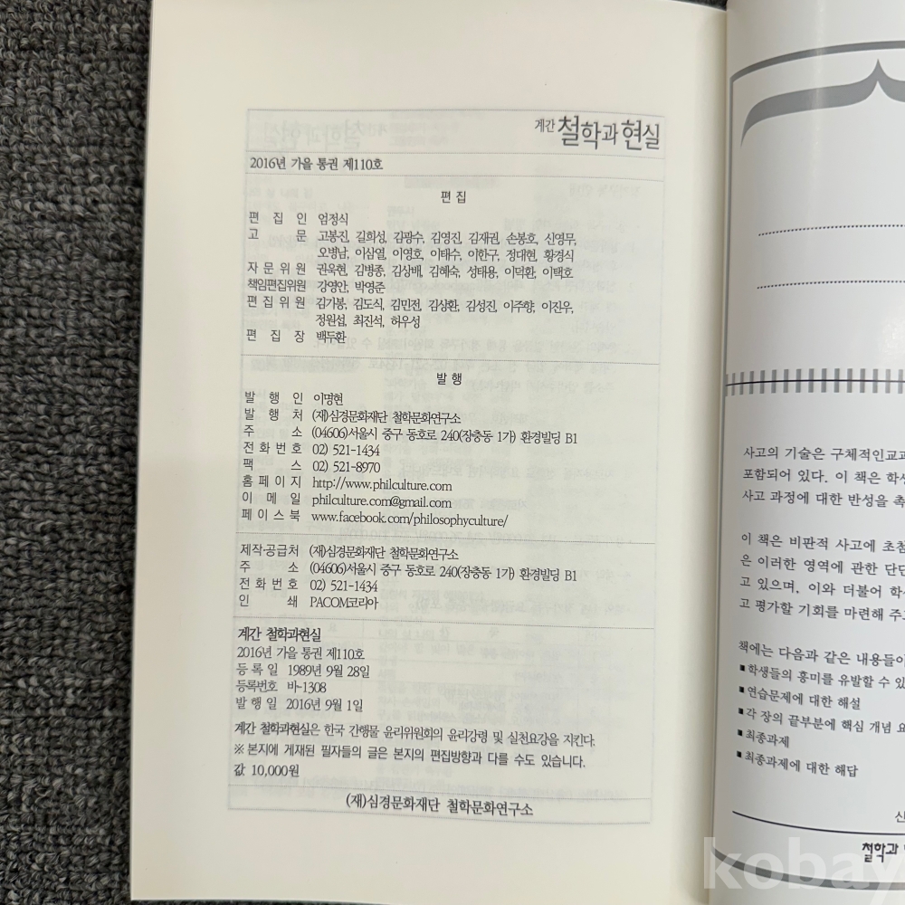 [철학, 한류 철학문화연구소, <계간 철학과 현실 2016 가을 110호>, 철학문화연구소, p. 258, 상태 중상급(사진참조)