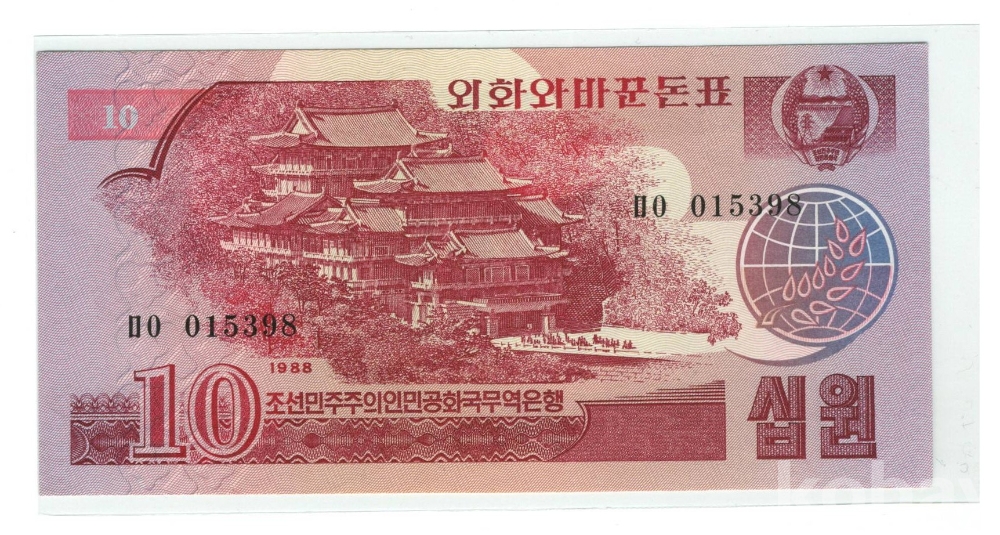이름: 1988년 북한 10원 돈표 ㅁㅇ 015398