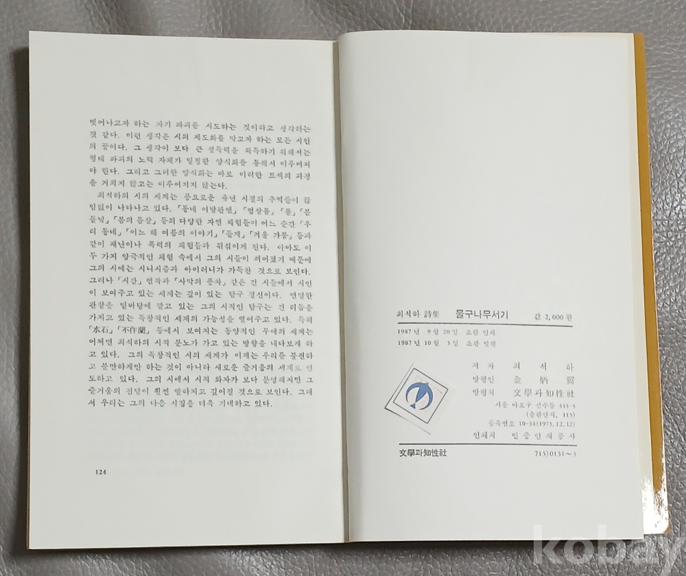 [초판본시집] 물구나무서기 - 최석하 1987년초판발행