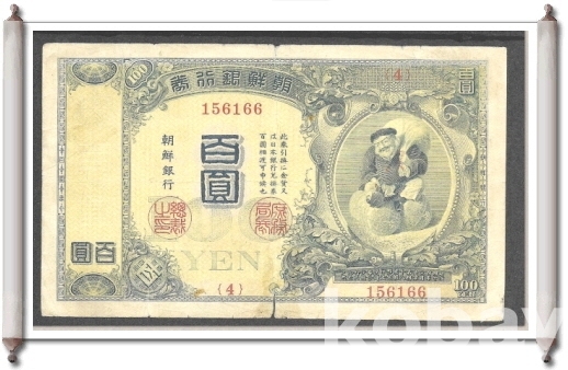 조선은행 100원권 의 귀한 보따리상 금권지폐입니다.