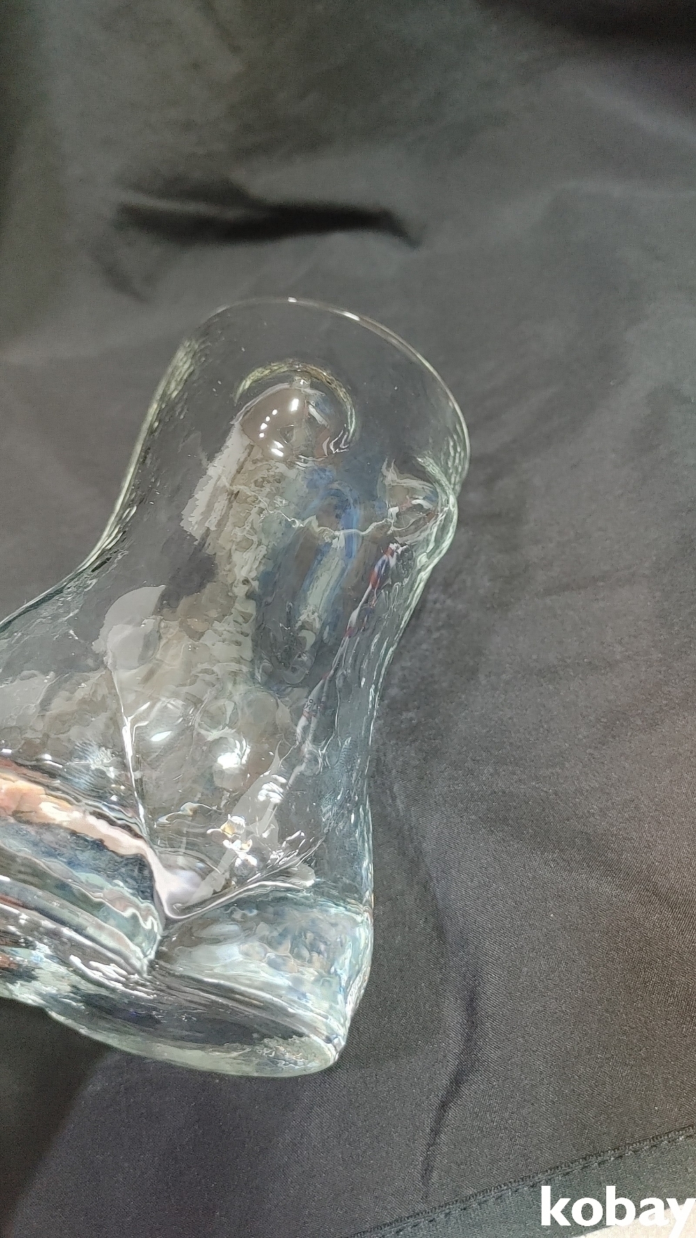 옆면보시면 양쪽에 줄 같은 선이 있는데 예전잔은 그런선이 보이며 간혹 기포 공기방울 작은게 있습니다