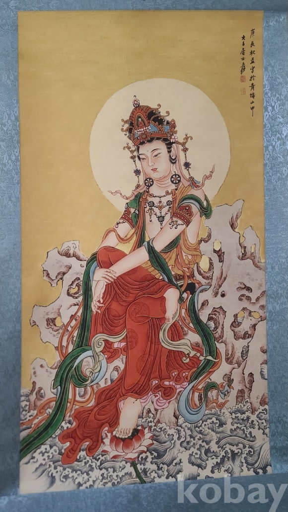 매우 섬세하고 의미가 담긴 족자화 입니다 비단천에 담겨있고 그림과 작품을 구불할수 있는 간단한 설명이 있는 표식도 있습니다 사이즈도 크고 상태 양호한 족자 작품 분양합니다