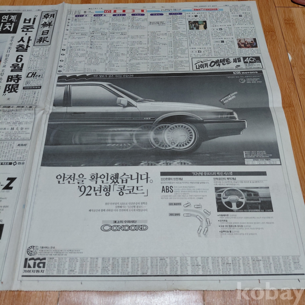 기아자동차 92년형 콩코드 승용차 광고 조선일보 92년2월25일 올려드립니다