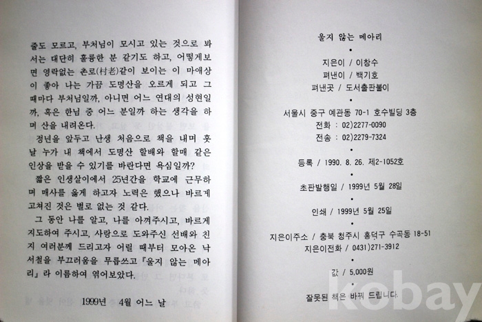 (이창수 시집) 울지 않는 메아리 - 1999년. 도서출판 불이 발행