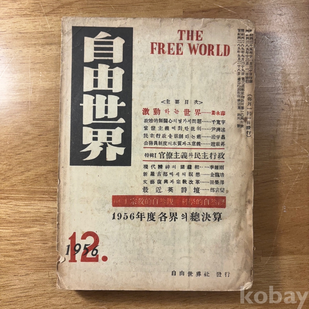 [희귀본, 한국현대사, 제1공화국, 1956년도 각계 총결산] <자유세계 1956년 12월>, 1956, p. 284, 상태 중상급(사진참조)