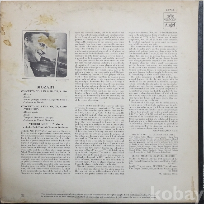 Mozart, Yehudi Menuhin – Violin Concertos (No.3 In G Major K.216 / No.5 In A Major, K.219 "Turkish"