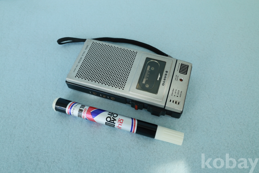 1980~90년대 비즈니스 현장의 필수품이었던 산요사의 고급형 마이크로 카세트 레코더입니다.