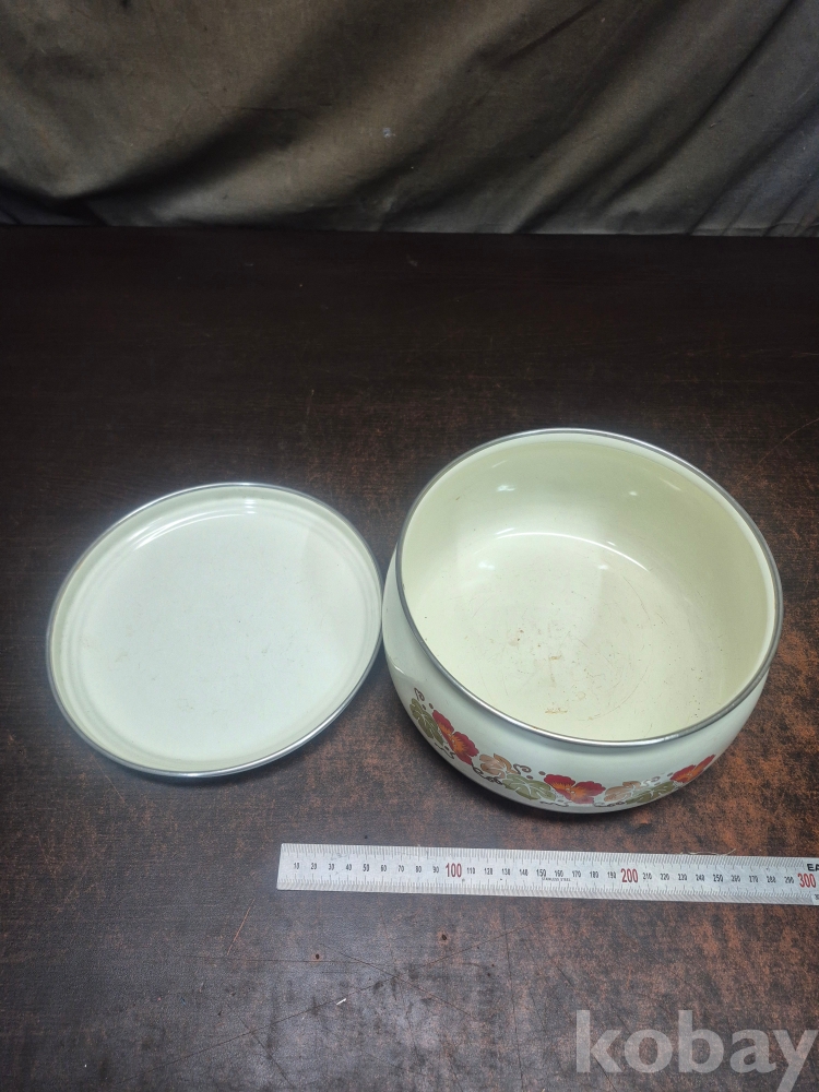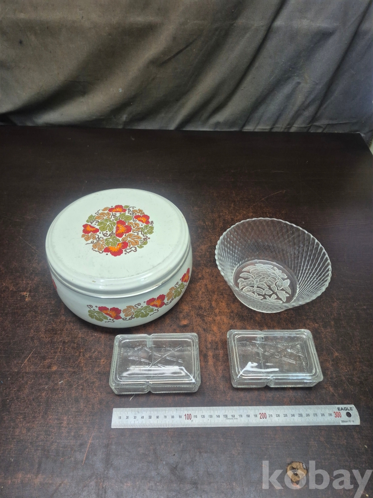 1970-80년대 범랑 밥그릇1점 유리볼1점 대나무 문양 유리제품 2점 일괄 21*21*11