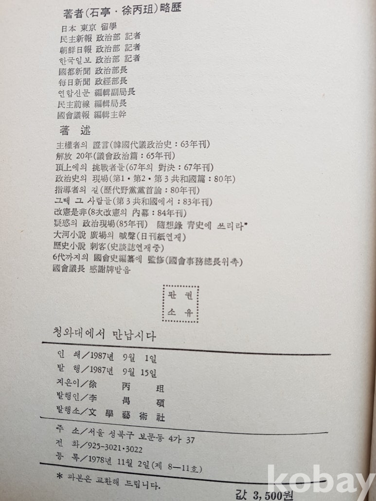 저자: 서병조 , 발행처: 문학예술사 , 규격: 15.4 * 22.4cm , 페이지: 325, 수량: 1권
