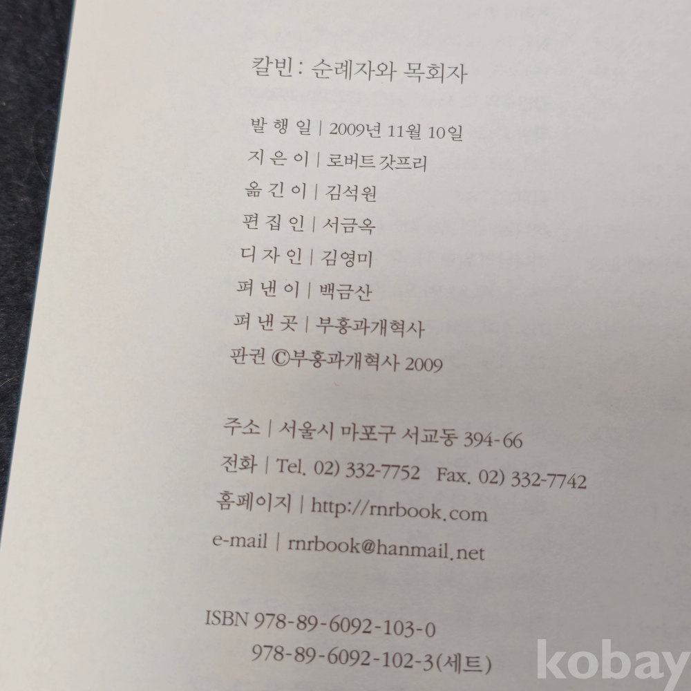 (천원경매) (((서적))) 칼빈 : 순례자와 목회자 (2009년 초판)