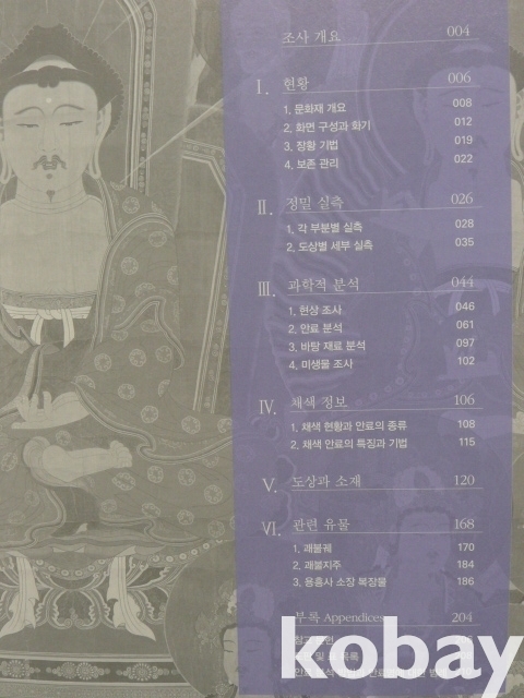 " 佛畵 " 1점에 대해 이렇게 상세하고 철저하게 畵法, 안료, 재질, 圖像 등에 대해 분석한 자료집은 아주 드뭅니다. 특히 문화재청(현, 국가유산청)과 (불교)성보문화재연구소 등 국내 최고 기관이 참여하여 도출한 결과물입니다.
