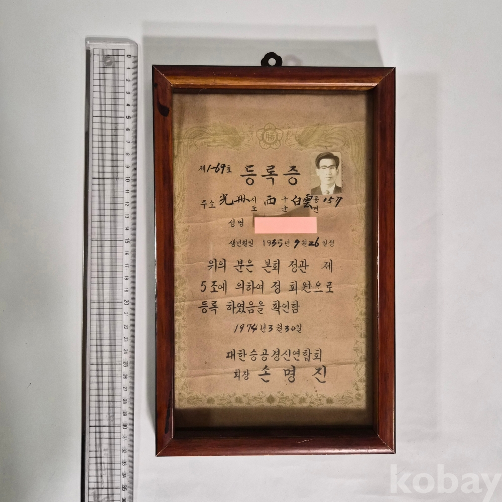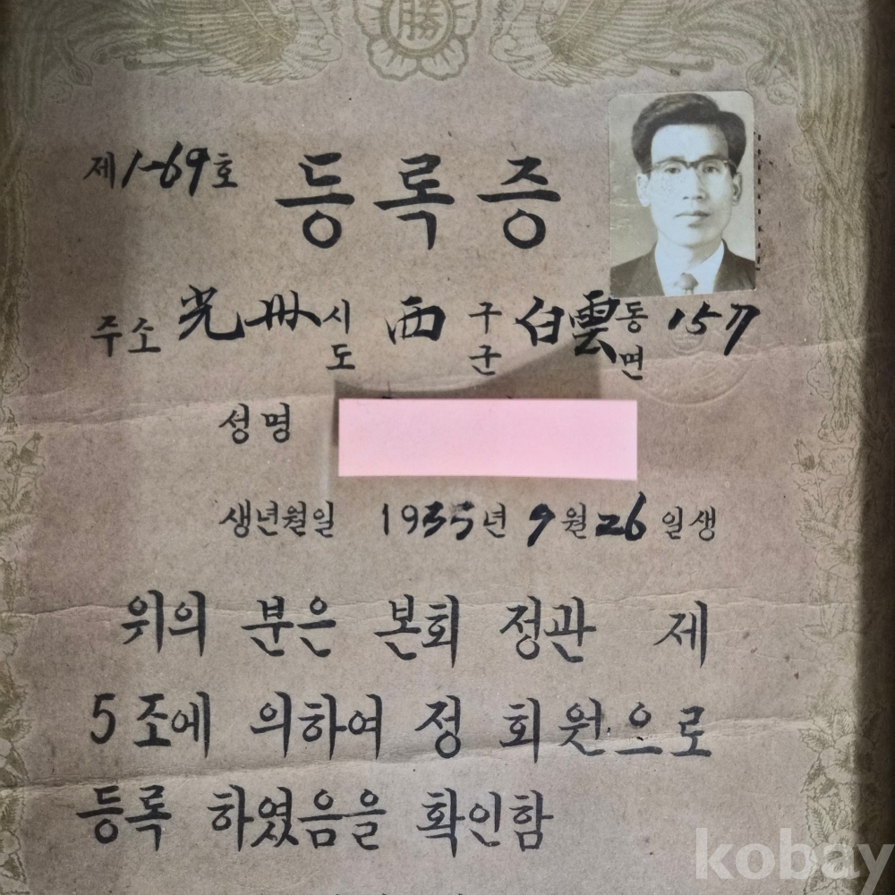 [희귀 근대사 자료] 70년대 대한승공경신연합회 정회원 등록증
