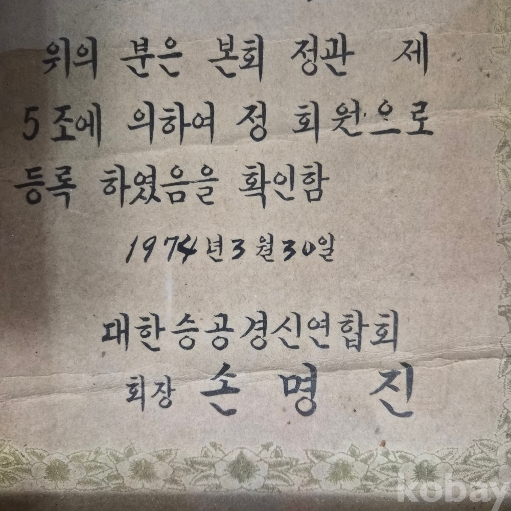 70년대 대한승공경신연합회 정회원 등록증 입니다