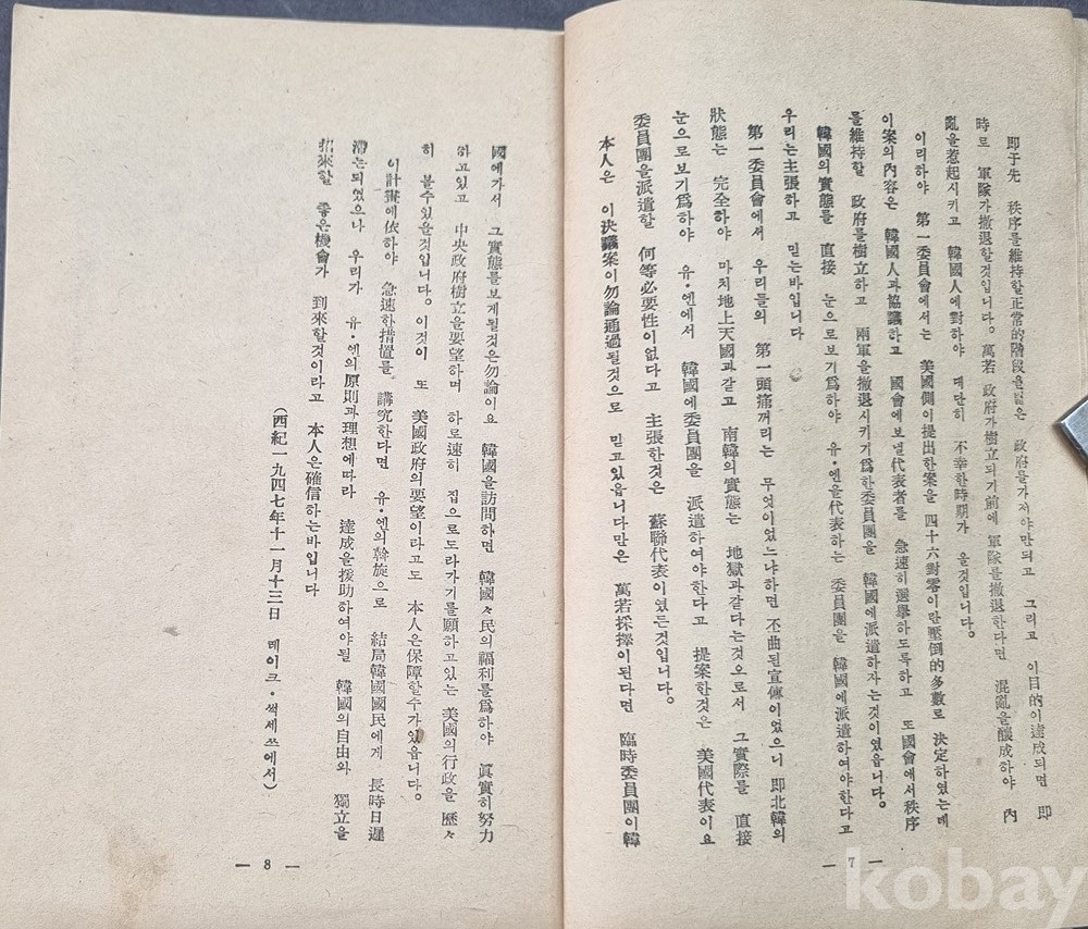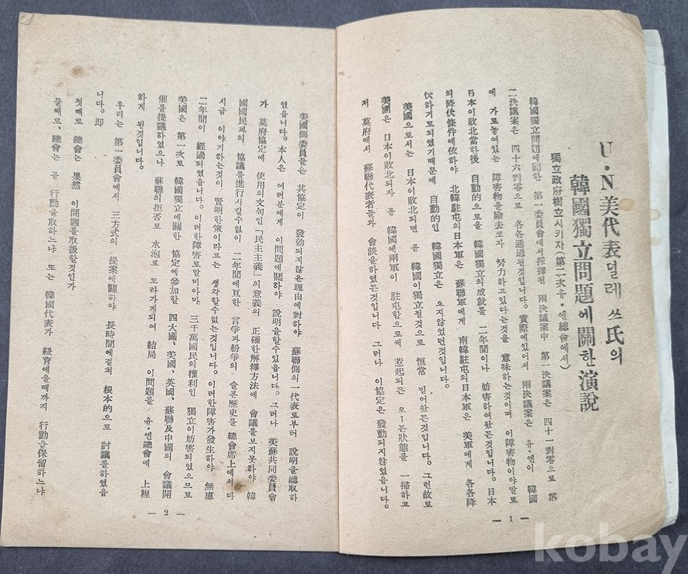 존 포스터 덜레스(John Foster Dulles) UN 미국 대표의 한국 독립 문제 관련 연설문 (1947년 제2차 UN 총회 등).
