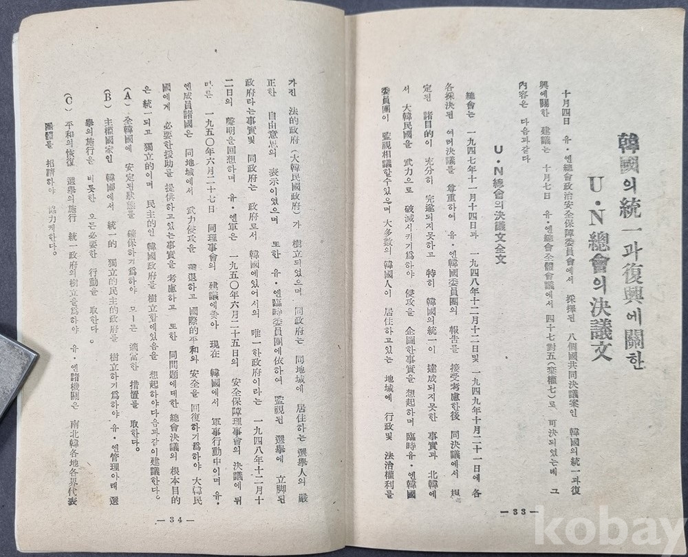 UN 총회 결의문: 한국의 통일과 복흥에 관한 결의문 전문 수록.