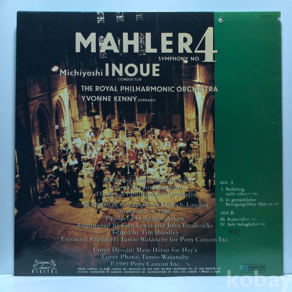 LP 81,350-36 Michiyoshi Inoue - MAHLER Symphony No. 4 _ 자켓 EX+ 알판 NM 90 년 국내반