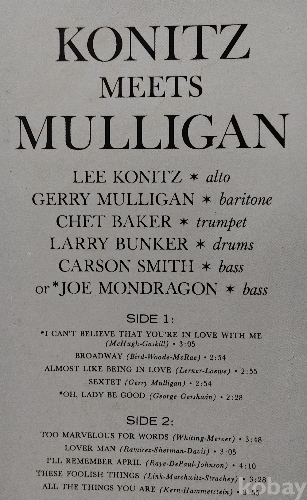 Lee Konitz 앨범입니다 / 트랙은 별도로 제공합니다 / Nm+